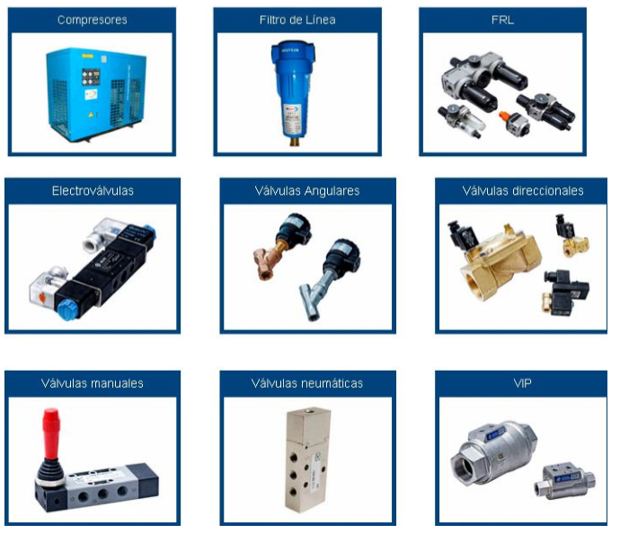 PRODUCTOS: Generación y tratamiento de aire: Compresores de tornillo y pistones, lubricados y libres de aceite. Filtros coalescentes y secadores de aire refrigerativos y por adsorción.