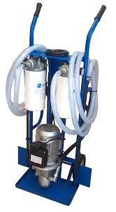 El carro de micro-filtrado está diseñado para filtrar una amplia variedad de aceites hidráulicos y lubricantes para cumplir o superar las nuevas especificaciones de la limpieza del aceite. El sistema está diseñado para eliminar la contaminación de partículas a través de la utilización de elementos de filtrado de alta eficiencia. El fluido procedente de un depósito existente para el sistema de filtración por medio de una bomba de desplazamiento positivo. El aceite pasa a través de los elementos de filtro antes de ser descargado a la salida, momento en el cual se bombea de nuevo al depósito existente. El sistema cuenta con dos medidores de presión diferencial para mostrar cuando los elementos tienen que ser cambiados y mangueras de transferencia de alta resistencia se utilizan tanto en la entrada y la salida.